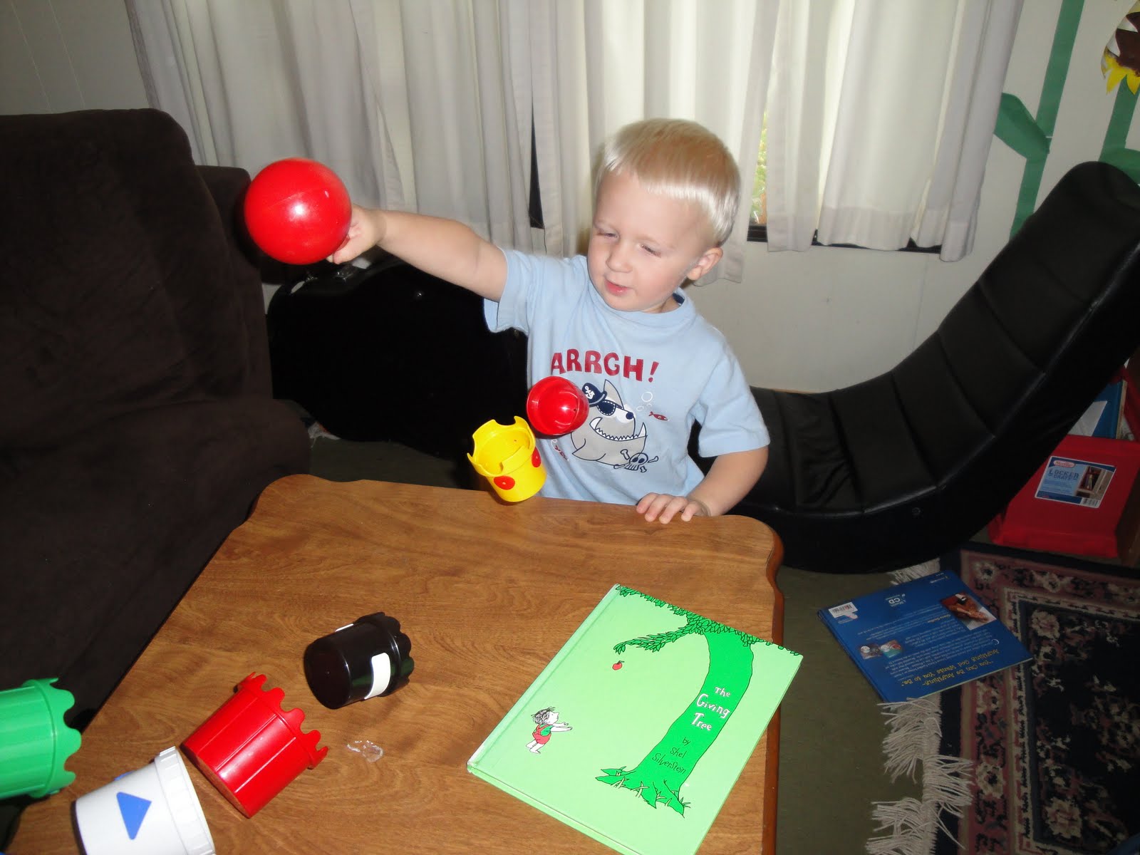 Second, I planned ahead. I had a big bag full of individually baggied snacks handy next to me in the front seat, so whenever Zachary got hungry I could hand him a snack baggie. (snacks are your friend when you're traveling - I bought things I don't usually buy like the frosted animal crackers & Teddy Grahams & fruit snacks for special treats) I also had several sippy cups full of water, since he tends to drop or throw them, and then be thirsty a half hour later. :) We put Zachary's car seat in the middle seat in the back, and Natalie's behind the driver's seat. That way I could easily hand things to Zachary while driving. I had a separate bag full of toys that Natalie loves, so that if she started crying, I could hand a toy to Zachary and have him hand it to her. This worked pretty well, he was usually willing to hand the toys to her after a reasonable amount of time playing with it himself. :)